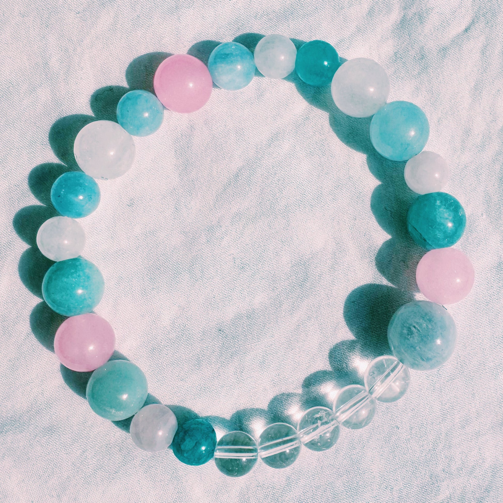 Introducing the Miami bracelet—a vibrant blend of aquamarine, rose quartz, and clear quartz that perfectly captures the tropical, sun-soaked vibe of the Magic City! Inspired by Miami’s stunning beaches, warm weather, and the electric energy of South Beach, this bracelet is all about living life with color and confidence. Aquamarine brings the ocean vibes, rose quartz radiates love and fun, and clear quartz adds that extra clarity to your summer adventures. Whether you’re lounging on the beach or hitting the hottest spots in town, the Miami bracelet is your perfect partner in style.