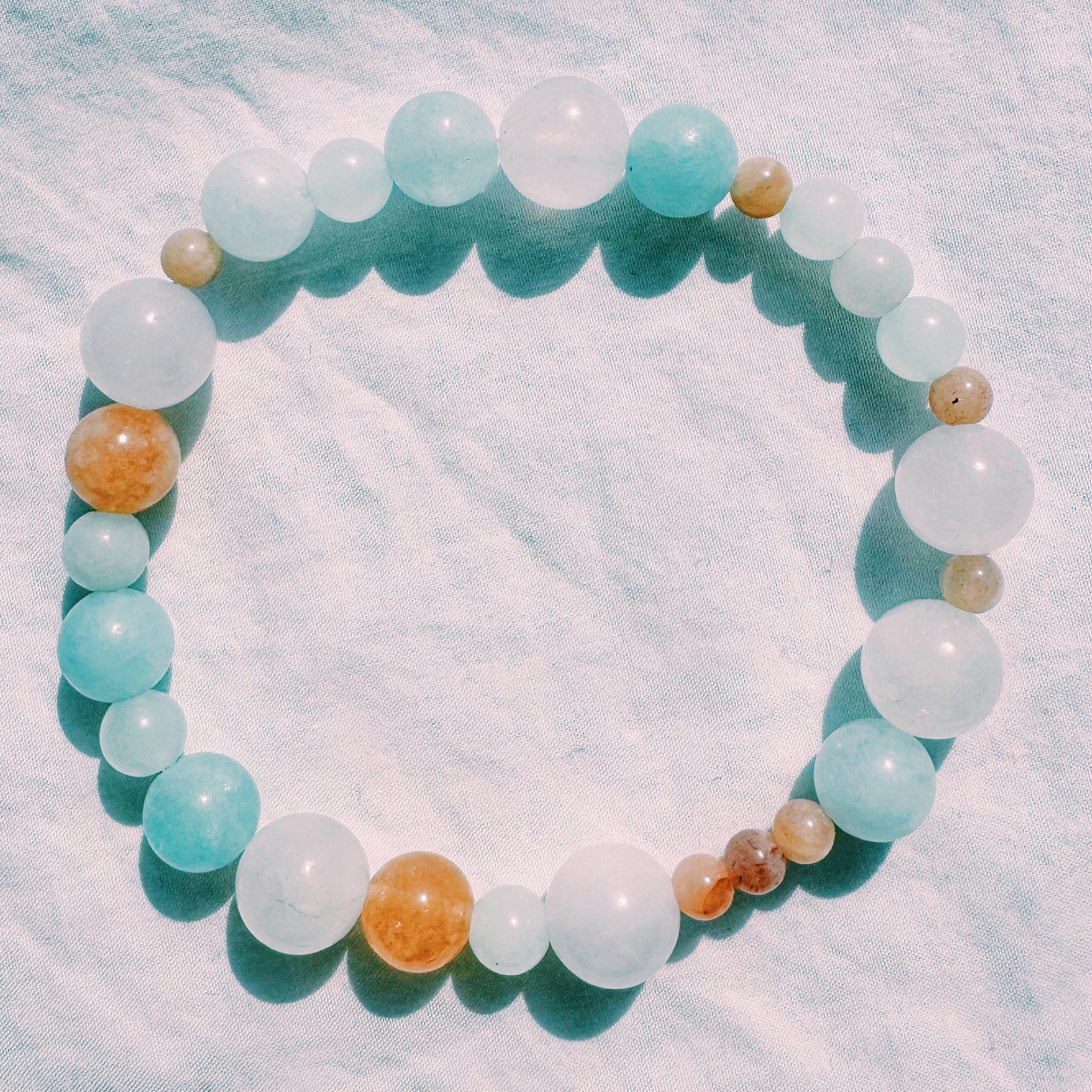 Introducing the Savannah bracelet—a radiant mix of clear quartz, jade, and sunstone, inspired by the sun-drenched charm of Savannah, Georgia! This southern gem is where timeless elegance meets laid-back warmth, with oak-lined streets, golden sunsets, and a hint of mystery in the air. Clear quartz brings clarity and focus, jade promotes balance and serenity, while sunstone infuses you with confidence and uplifting energy. Whether you’re strolling beneath Spanish moss or sipping sweet tea on a veranda, the Savannah bracelet captures the soft, golden glow of the South. Slip it on and carry the soulful, glowing spirit of Savannah wherever your journey takes you.