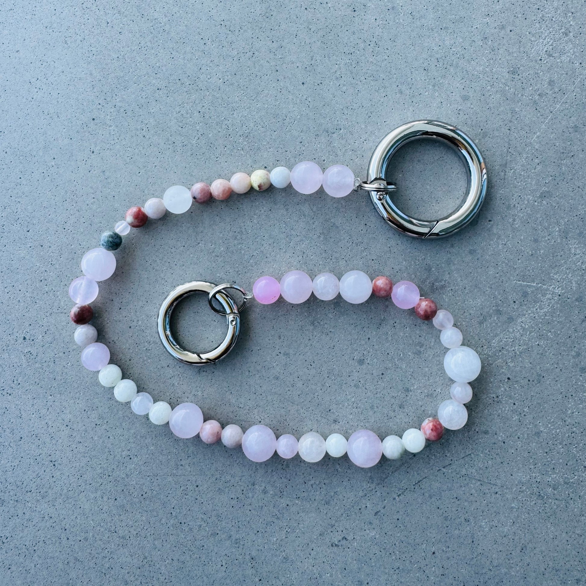 Introducing the Tulum bag charm — a dreamy blend of rose quartz, pink jade, and lepidolite, inspired by the bohemian soul and healing energy of Tulum, Mexico. Known for its white-sand beaches, jungle hideaways, and spiritual retreats, Tulum is where you go to reset, reconnect, and realign. Rose quartz opens the heart to love and self-compassion, while pink jade brings gentle strength and emotional balance. Lepidolite, rich in calming energy, helps release stress and invites inner peace. Whether you’re meditating by the ocean or simply craving a little more softness in your day, the Tulum bracelet is your reminder to slow down, breathe deep, and lead with love.