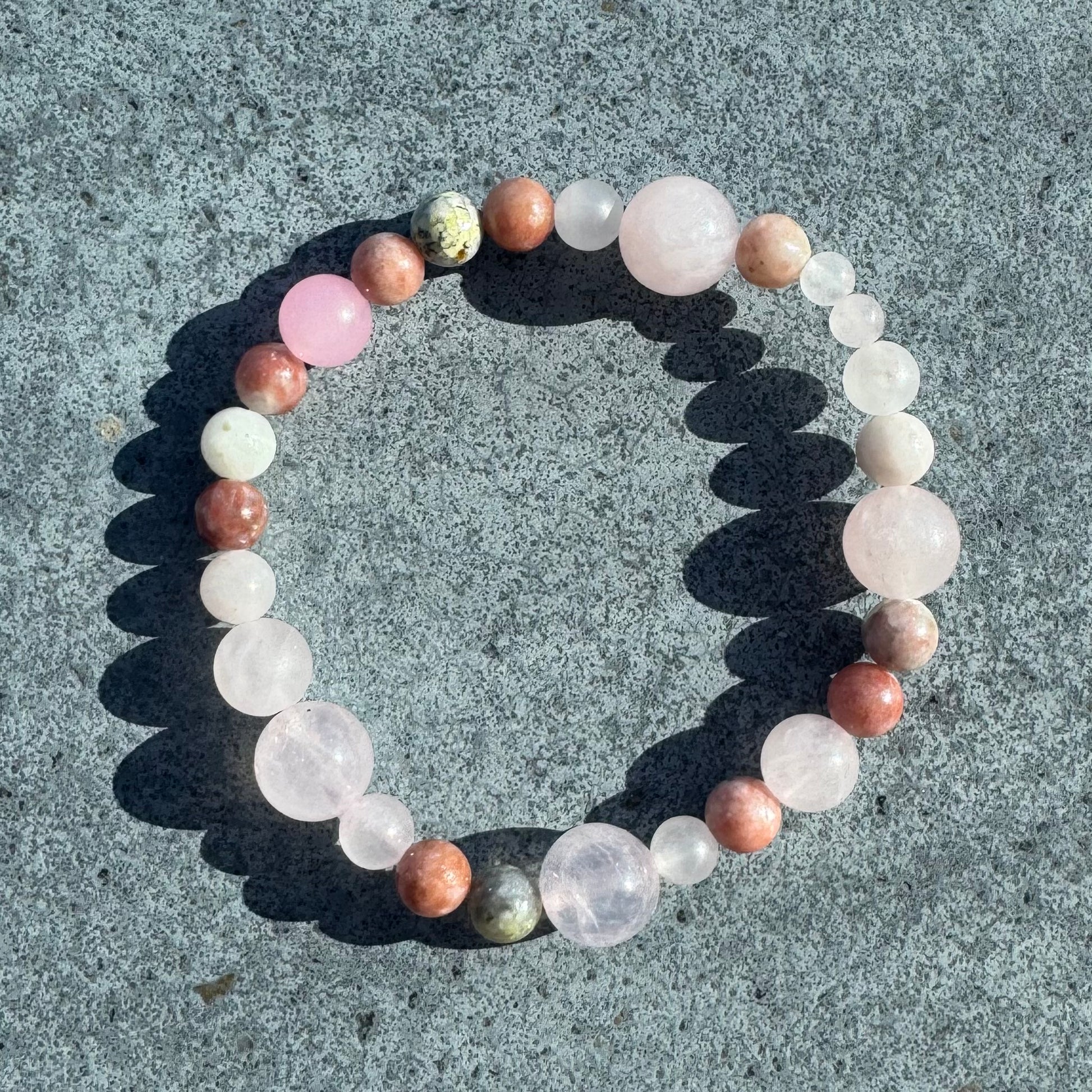 Introducing the Tulum bracelet — a dreamy blend of rose quartz, pink jade, and lepidolite, inspired by the bohemian soul and healing energy of Tulum, Mexico. Known for its white-sand beaches, jungle hideaways, and spiritual retreats, Tulum is where you go to reset, reconnect, and realign. Rose quartz opens the heart to love and self-compassion, while pink jade brings gentle strength and emotional balance. Lepidolite, rich in calming energy, helps release stress and invites inner peace. Whether you’re meditating by the ocean or simply craving a little more softness in your day, the Tulum bracelet is your reminder to slow down, breathe deep, and lead with love.